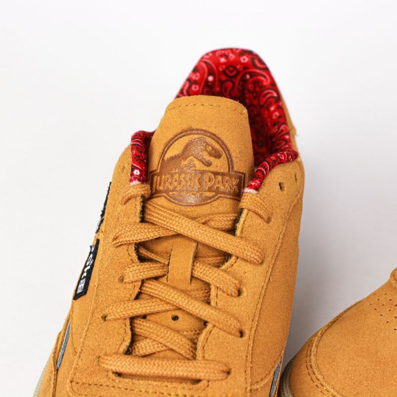 Cette chaussure issue de notre collection Jurassic Park met à l'honneur le célèbre paléontologue. Inspirée du Dr Alan Grant, elle affiche une tige en suède avec un col de cheville dont la doublure rappelle son bandana. L’étiquette Reebok semble avoir été déchiquetée par un raptor.