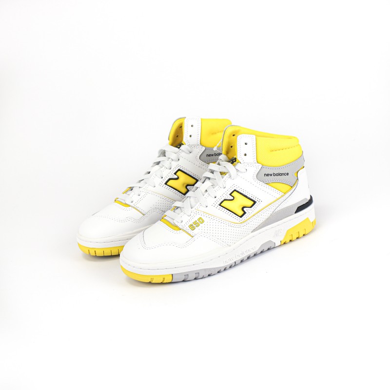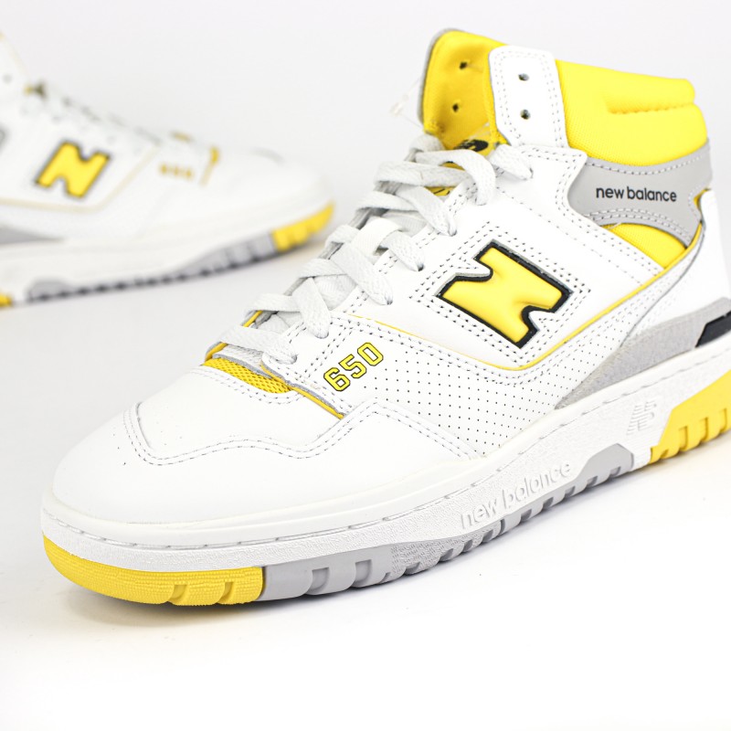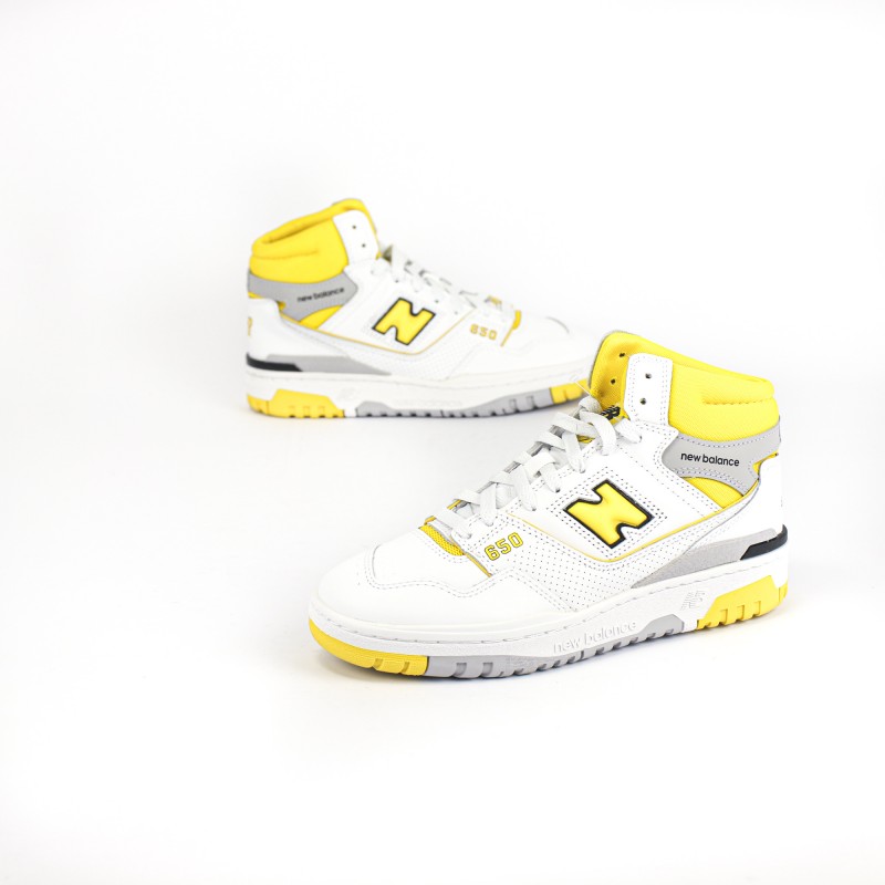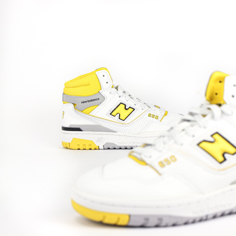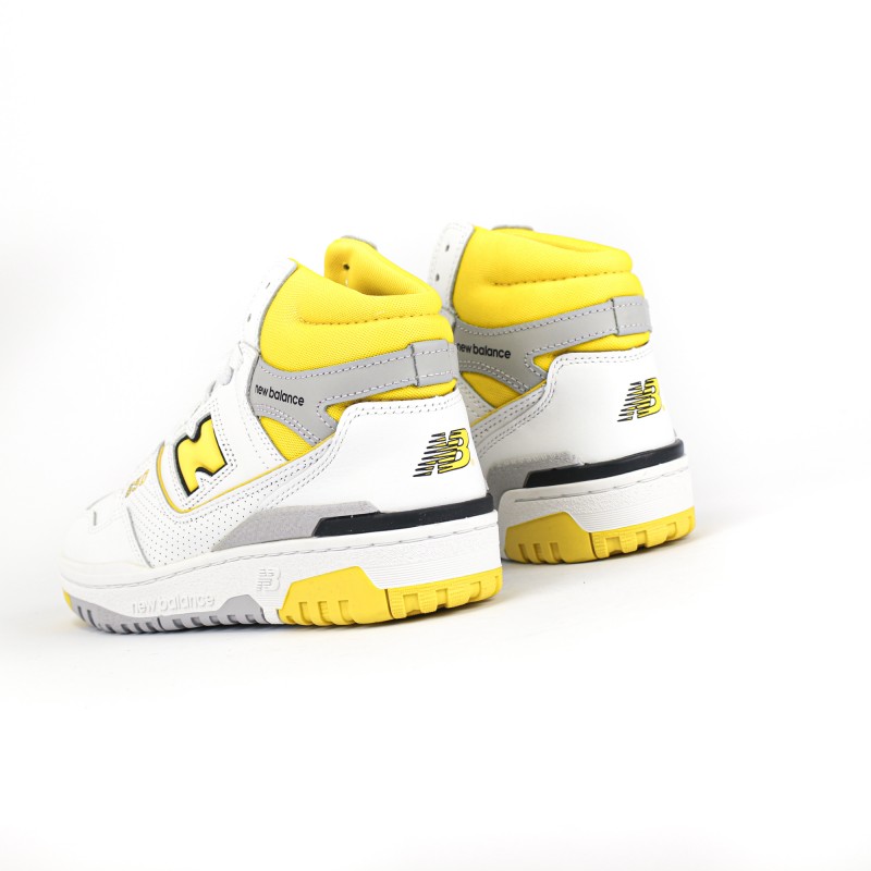 En effet, cette silhouette appelée 650R se pare d?un cuir blanc perforé par endroit, de nombreux détails noir et jaune comme le col en mesh qui accueille une bande grise avec son branding.