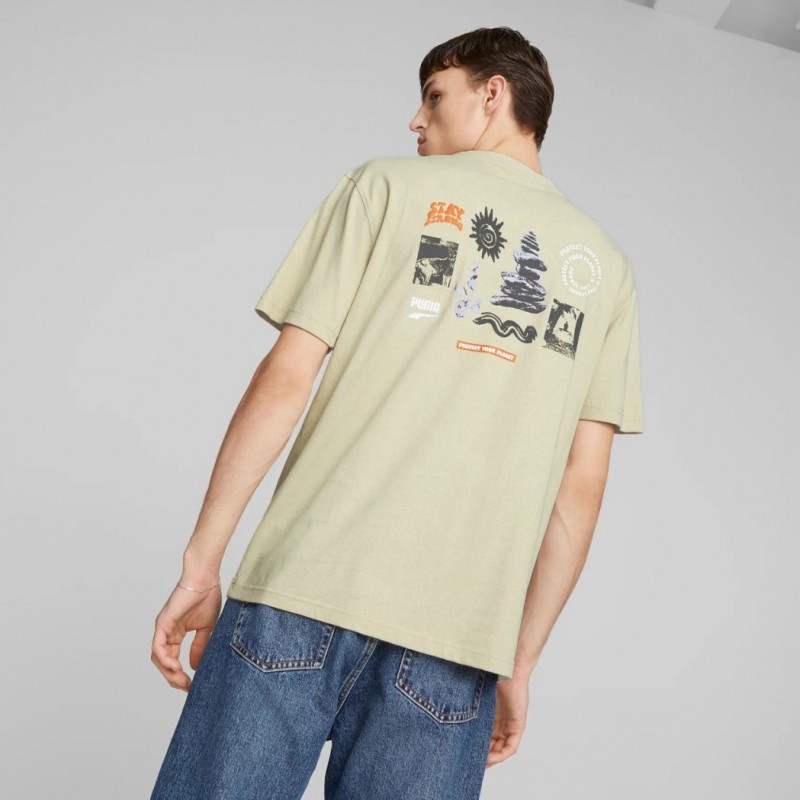 TEE-SHIRT DOWNTOWN GRAPHIC PROTECT YOUR PLANET BEIGE